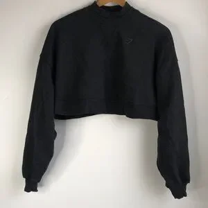 Stay stylish and comfortable with this oversized charcoal gray cropped sweatshirt. Banded and Ribbed cuffs/hem/neckline. In excellent condition. Approx 23” from armpit to armpit and 15” from shoulder to hem