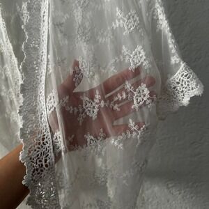Sheer lace kimono cardigan white floral open front lightweight beach cover up.