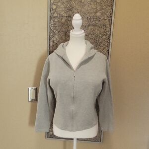 Comfortable light gray zip-up hoodie. Perfect for layering. Simple and stylish.