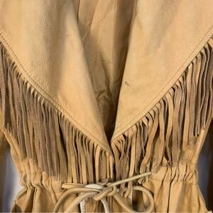 VTG LNR Soft Leather Western Tassel Fringe Waist Drawstring Jacket