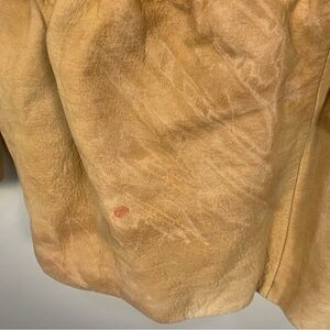 Super cool buttery soft western style VTG jacket by LNR. Fringe tassel detailing with tie drawstring waist. See pictures for some water marks on sleeves and back and some piping coming away on drawstring all barely noticeable waist otherwise great condition…leather is lovely…