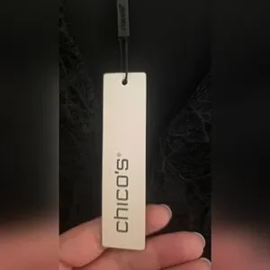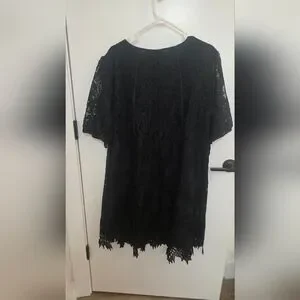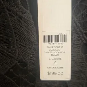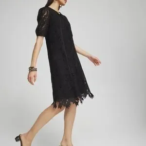 Chico's midi dress with intricate lace design. Short sleeves and elegant style. Perfect for any occasion.