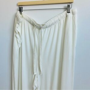 Spandex blend sleep set with short sleeve sleep button up top in cream with pink trim.
