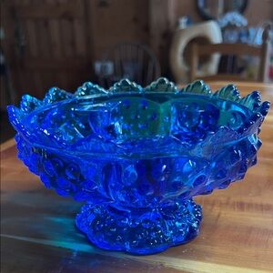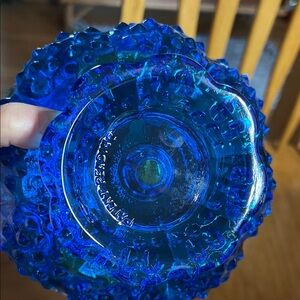 Vintage Fenton Cobalt Blue Hobnail Glass Candle Bowl
