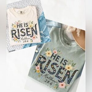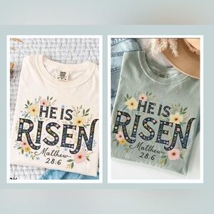 S9 new comfort colors he is risen graphic shirt bay cream med large xl boutique