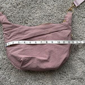 Women’s Kedzie crossbody purse, bag. Has adjustable strap. Color is a dusty pink, mauve with gold accents and zippers. Inner lining is leopard print. Made from lightweight material and cushiony inside. Lots of compartments! Front, side and back zipped compartment. Main inside has 2 different inner compartments with pockets. Very good clean gently used condition! See all pictures and measurements.