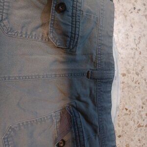 Amazon Essentials Men's Cargo Shorts SZ 38 Blue Gray 100% Cotton Bleach spot near button & a little spot on front Please see photos Approximate Measurements: Waist 40" Inseam 9.5"