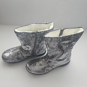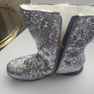 Sparkle with these dazzling silver boots. Ideal for winter glamour.