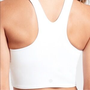 Athleta Conscious Crop Bra White. Size: M. High-neck with a sleek and supportive design. Padded and buttery soft. Excellent pre-loved condition