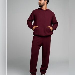 Stylish burgundy hoodie and jogger set. Perfect for casual wear. See for some slight piling wear. Very comfortable! Maroon was a limited edition color for this set! Sold out online! Size large, can be unisex.