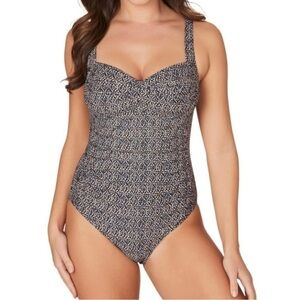 Niptuck Nautical Navy Twist Front One Piece Swimsuit Size US 8