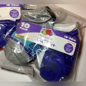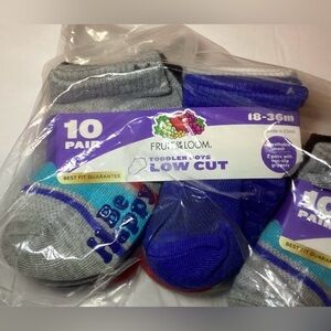 Fruit of the Loom toddler boys low cut socks. Size is 18-36M assorted colors. Twenty pairs total! New in package.