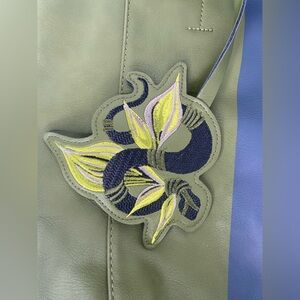 NWT Olive Green and Navy Large Tote Bag With Floral Attachment