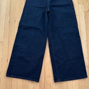 5 for $25 // Zara wide leg high waist cropped dark blue jeans size 2