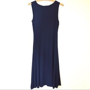 Navy Blue Twist Front Low Plunge Neck Jersey Knit Midi Dress, Size Small