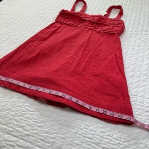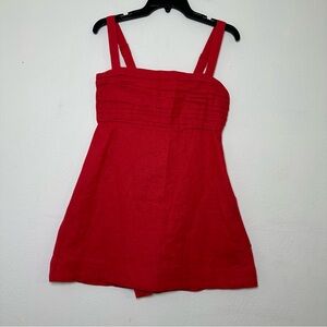 Vibrant scarlet mini dress with a textured bodice. Sleeveless and stylish. Perfect for warm days.