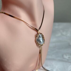Elegant gold necklace with a striking white pendant. Perfect for any occasion.