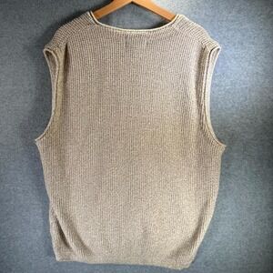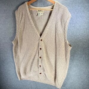 Vintage Eddie Bauer Sweater Vest Men's Large Tall Tan Waffle Knit V-Neck Casual