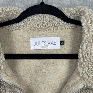 Jules Kae Kylie Sherpa Moto Jacket Aviator Neutral Teddy Fleece Faux Suede Trim