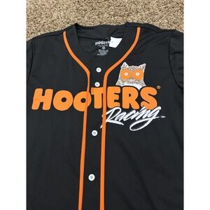 Hooters Racing Baseball Jersey Black Orange Button Up Shirt 00 Owl Logo Sz Small