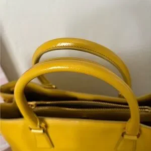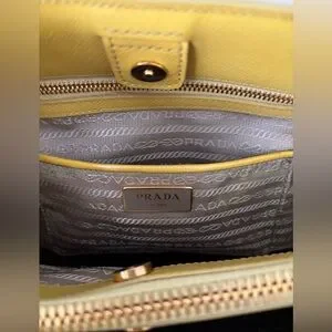 Chic and spacious Prada tote in bright yellow leather. Ideal for adding a pop of color to your outfit.