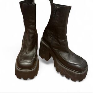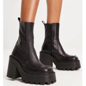 Super chunky black leather platform boots bought at asos a little over a year ago but only used them twice. I’m not used to chunky shoes! Overall heel is 4 inches but shoe itself has a 2 inch base. In excellent condition.