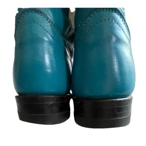 Beautiful vintage Justin cowgirl boots crafted from genuine leather in a striking teal / turquoise blue color. Classic western styling with a pointed toe and traditional stitched shaft. These boots are well-made, stylish, and perfect for western wear, festivals, or collectors. Women's Size 6B (standard width). Vintage character with plenty of life left.