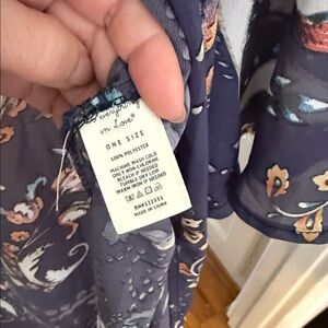 Gorgeous floral kimono with ruffled sleeves and slits up the side. The brand is do everything in love. One size.