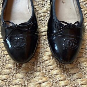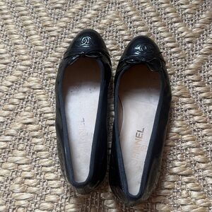 Stylish black flats with iconic logo detail. Perfect for everyday elegance.