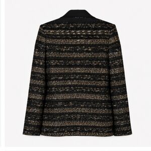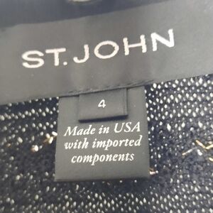 Iconic St. John Passementerie knit blazer in black with metallic gold woven throughout.