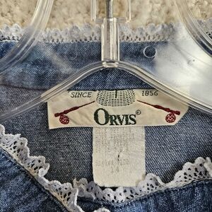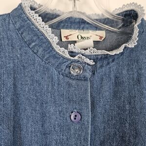 Vintage Orvis Denim Dress Midi Prairie Cottage Long Sleeve Button Womens 14