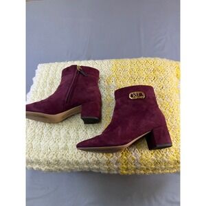 BOHO Ralph Lauren Burgundy Suede Block Heel Ankle Boots Women's Size 7B Wynne
