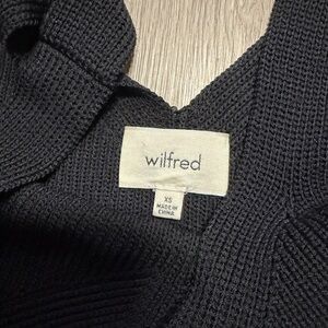 Chic black mini dress by Wilfred. Features a sleek knit design. Perfect for versatile styling.
