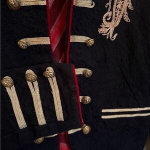Cropped, fitted jacket with gold embroidery and plaid flannel lining. Super flattering, perfect for layering.