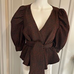 NWOT - Hutch for Anthropologie Brocade Wrap Top Puff Sleeve Tie Waist Size M