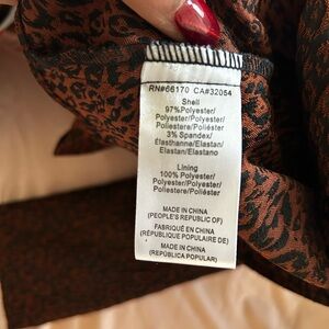 Elevated and effortlessly chic, this Hutch for Anthropologie wrap-style top is crafted in a richly textured brocade fabric with an abstract animal-inspired motif in deep burgundy and black. The fabric has subtle dimension and structure, giving it a luxe feel that stands apart from standard prints.