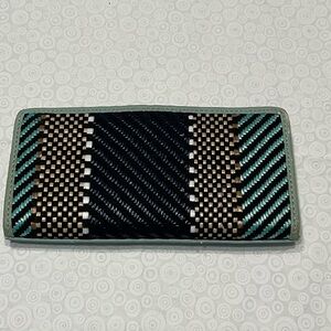 Stylish woven wallet featuring a black and green pattern. Perfect for everyday use.