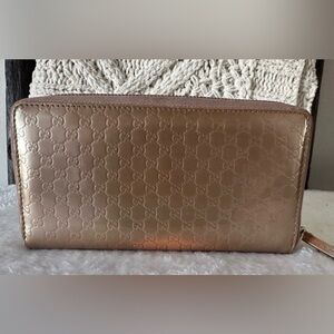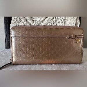 Gucci Shimmering Bronze Embossed Logo Wallet Pouch