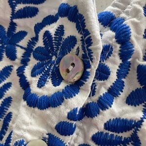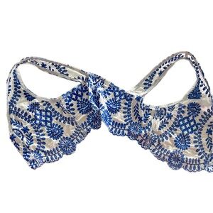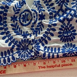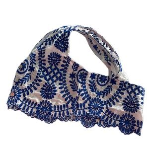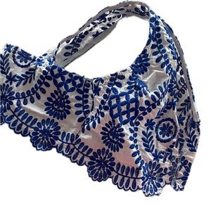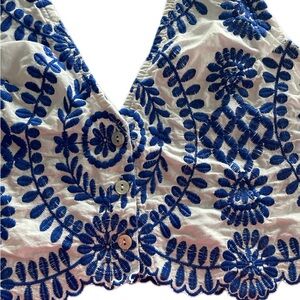 SHEIN Blue And WhiteEmbroidered Sleeveless Crop Top Small