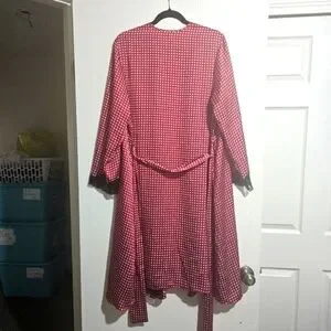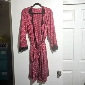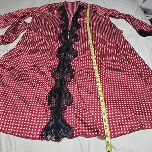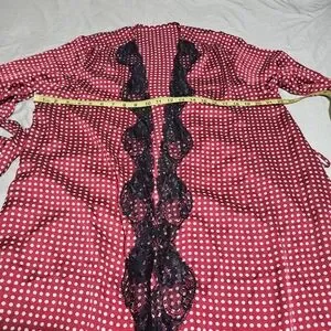Frederick's of Hollywood Women's Satin and Lace Polka Dot Midi Robe Red and White Open Front with Tie XL