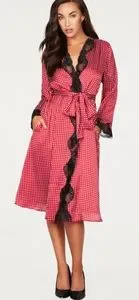 Frederick's of Hollywood Women's Polka Dot Satin and Lace Robe Red and White XL