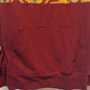 Vibrant pullover with geometric patterns. Features a half-zip design and front pocket. Perfect for adding a pop of color.