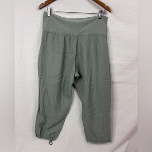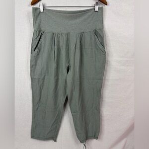 Size 8 adjustable rise, designed for everyday wear, tencel is super soft moisture wicking fabric, slim-straight fit, inside media pocket, fold over waistband, in gently used condition with no flaws to mention