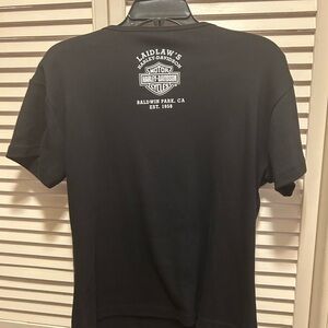 Classic black tee featuring Harley-Davidson logo in silver. Comfortable cotton fabric. marked 2x but would fit XL Better.