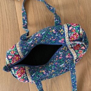 This vintage Vera Bradley soft and cozy floral tote bag features a beautiful blue with multicolor floral design (Bluebird pattern) circa 2000s Perfect size. 24 inch functional and easy zipper and a size pocket
