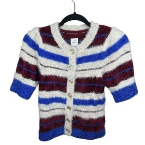 Maeve Fuzzy Stripe Cardigan Sweater XS Multicolor Blue Playful Preppy Trendy