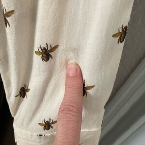 Stylish cream colored blouse featuring a charming bee print. Perfect for casual outings or a day at the office. Blouse is made of viscose. In good condition overall, there a few light marks on the fabric as pointed to in pics. Not easily noticeable. Identical to the one Mel wore on Virgin River.