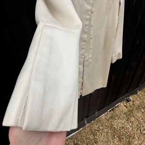 Chic beige single breasted trench coat by GAP. Ideal for versatile styling. Watch video to capture the attractive classic features of this light weight coat.