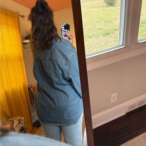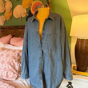 Classic oversized blue button down shirt. Features front pocket and button cuffs. Perfect for casual wear. Only worn a handful of times.