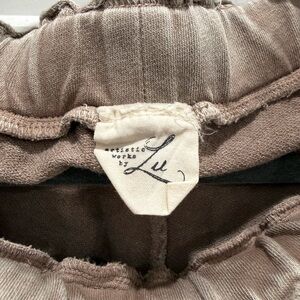 Mushroom LU-leisure wide leg pants pants featuring elastic drawstring waistband with side cargo pants, back pockets and raw seam details. True to size fit.